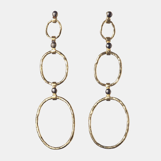 Earrings slightly hammered, in 24 karat gold vermeil and oxidized silver. Inspired by a chic and Parisian spirit, a timeless jewel designed as a talisman.