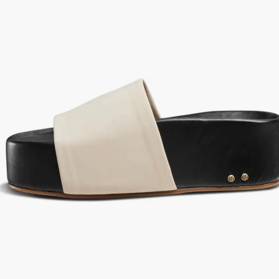 A wrapped platform adds sleek appeal to this slide sandal made from supple leather and cushioned with plush memory foam. The molded footbed will provide arch and overall foot support.