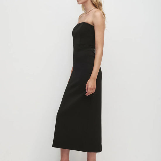 The Long Willow Dress is a 45.5" strapless LBD in an easy stretch fabric. Body-skimming with a back slit, it’s a favorite for date night, layered under a blazer, or packed for your next trip.