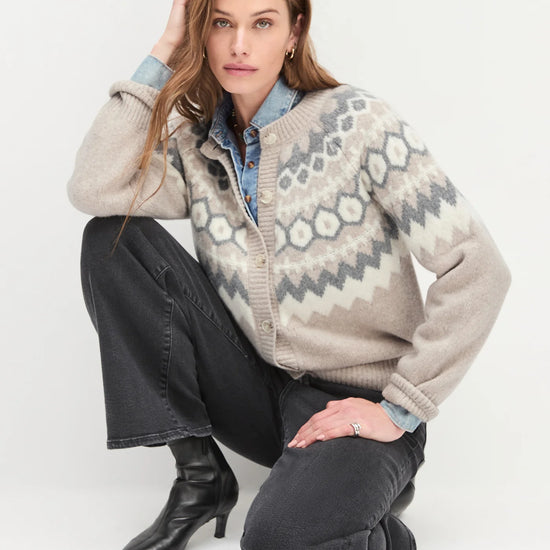 This cozy, oversized cardigan is sure to be a cold weather favorite in a classic fair isle pattern. It's crafted from a cashmere-wool blend for just the right amount of softness with an intarsia pattern in the most perfect seasonal shades.