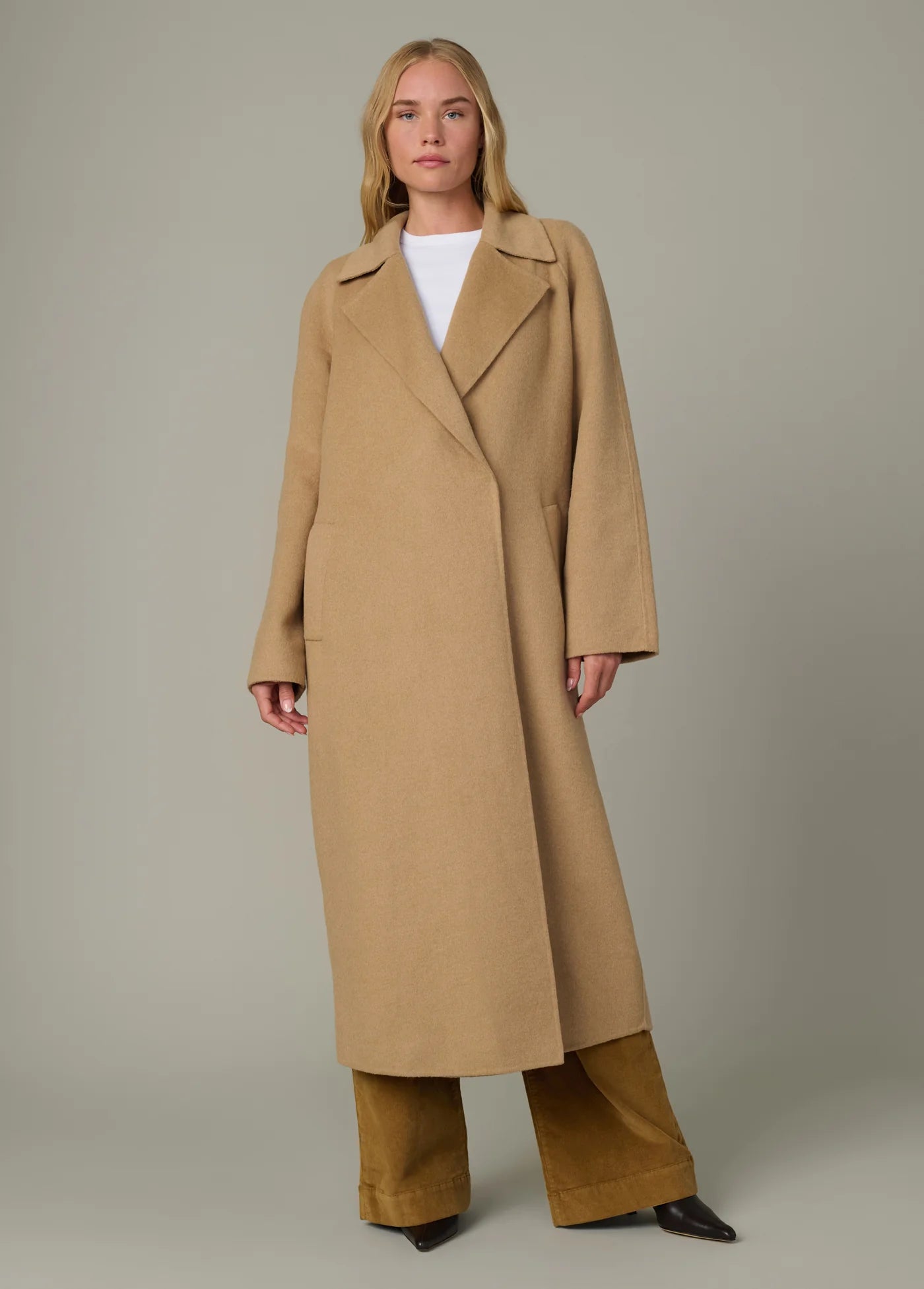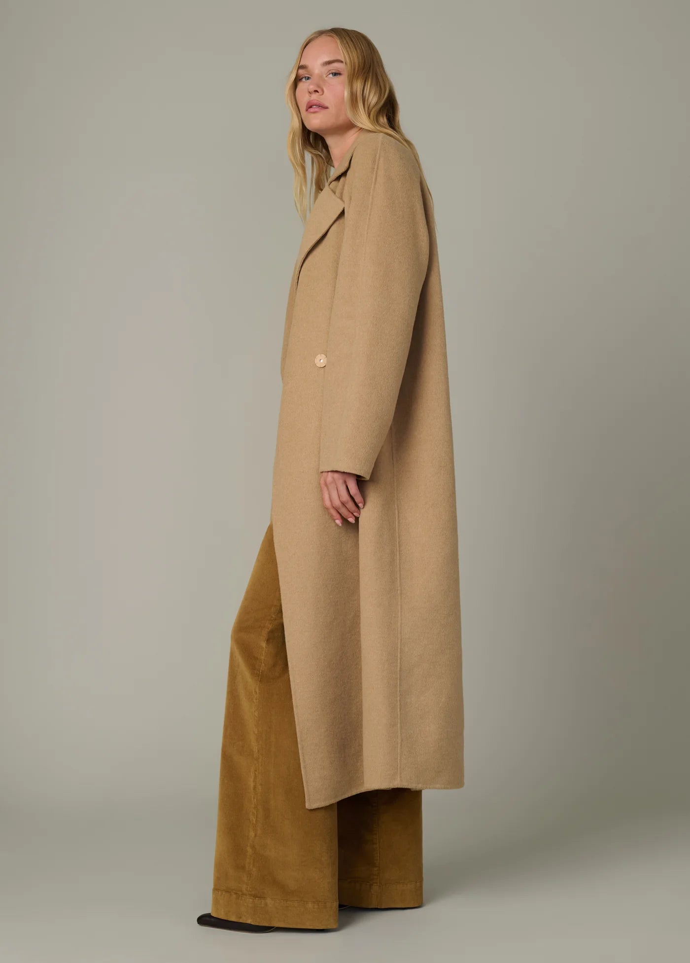 A wardrobe essential: the go-to, double-faced wool coat.