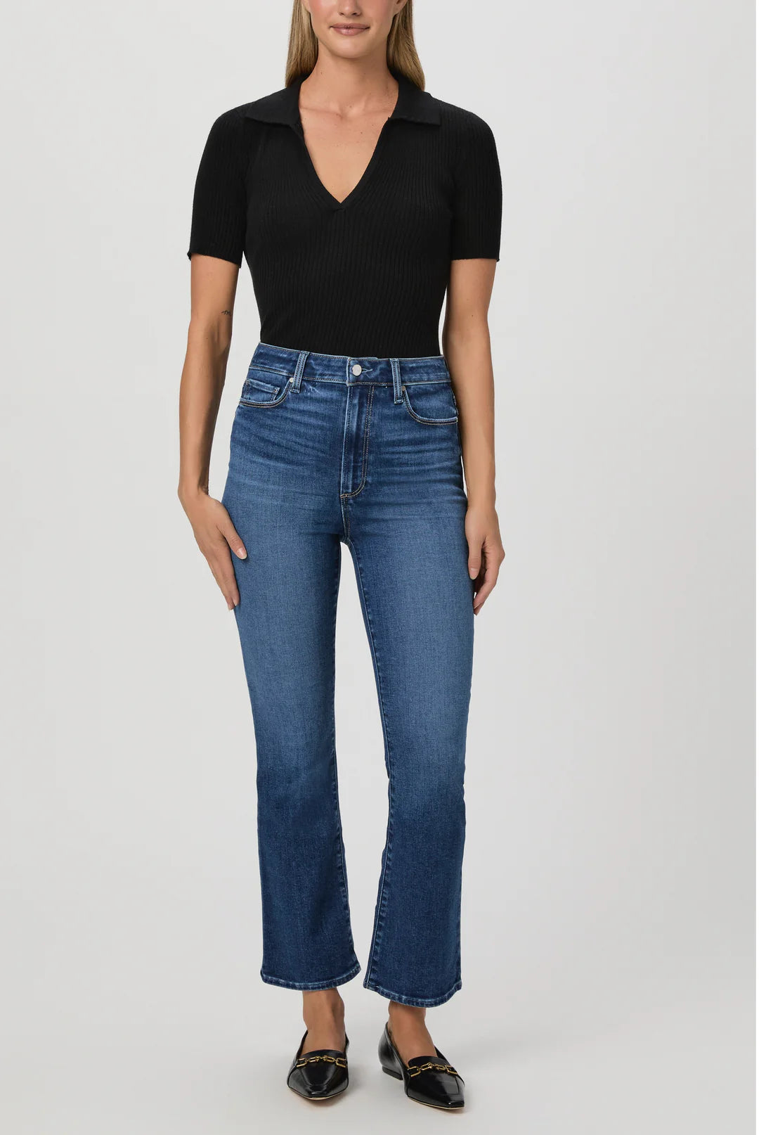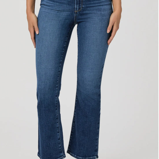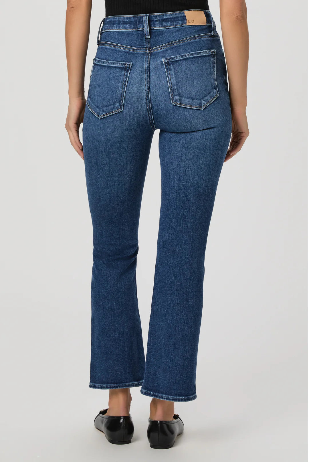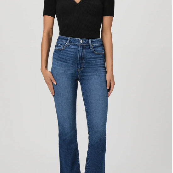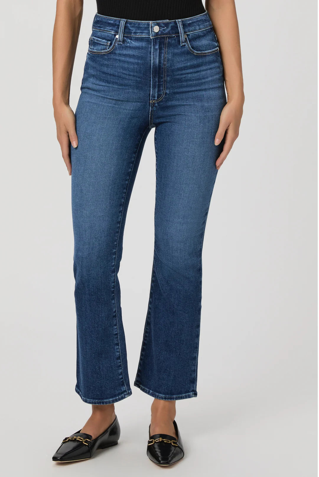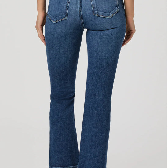 Fall for the cool ankle-grazing silhouette of these high-waist jeans crafted from comfortable stretch denim and punctuated with flare hems.